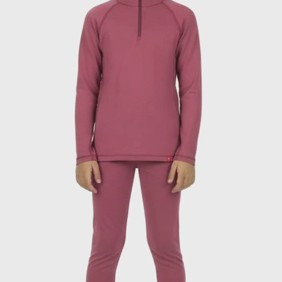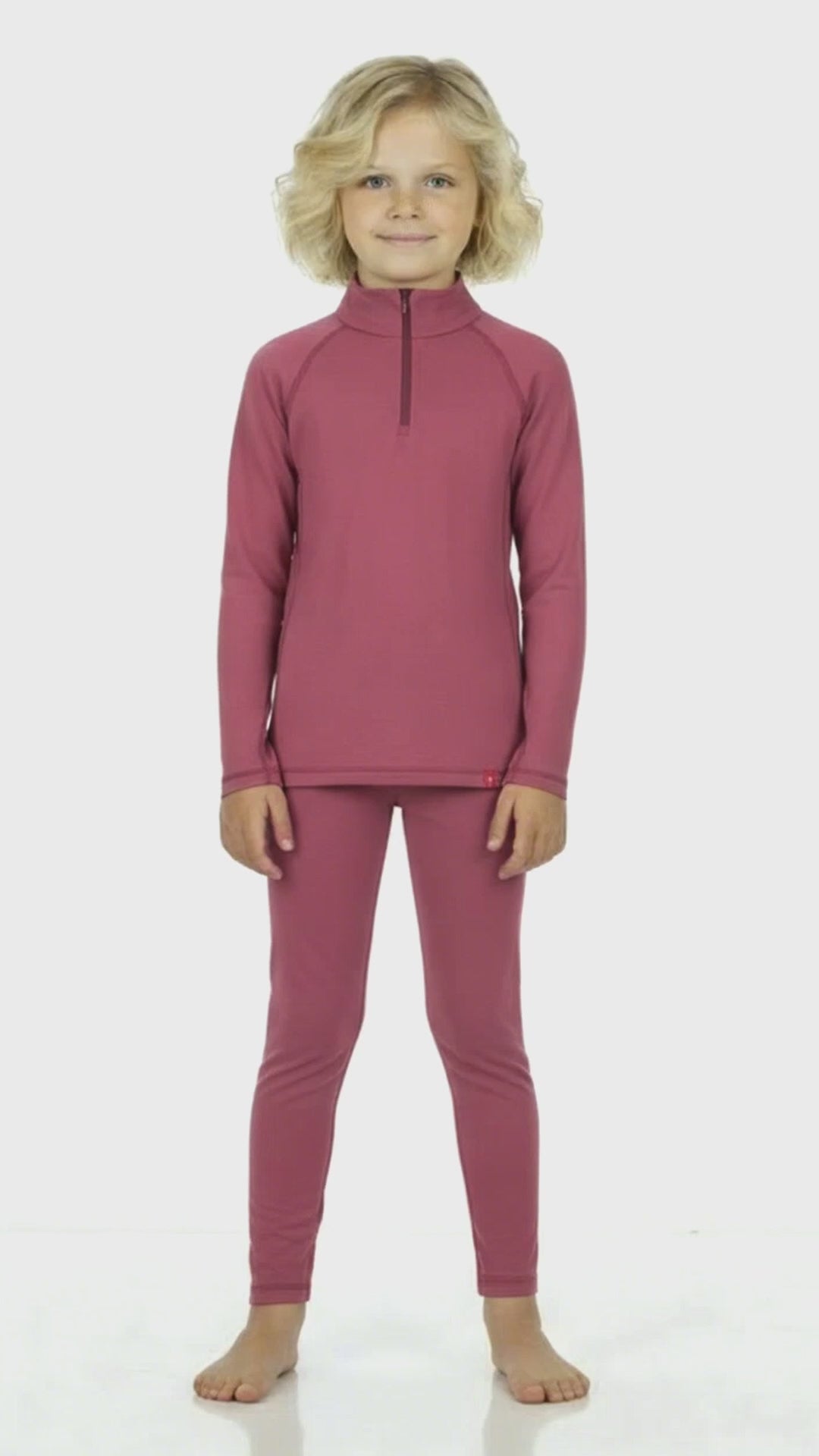 Conjunto de ropa interior térmica para niños Wooly de lana merino suave en color vino tinto de 2 a 10 años