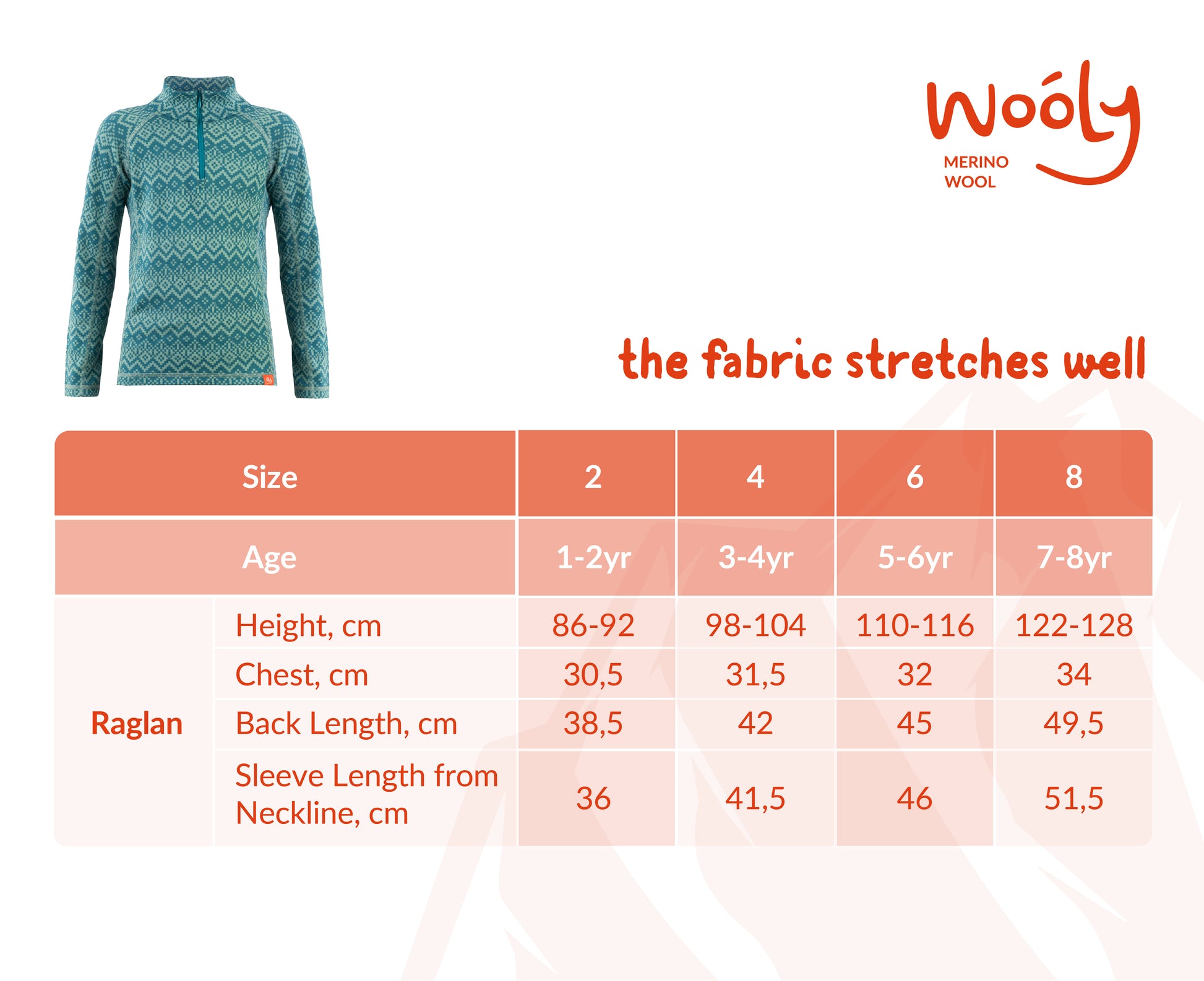 Wooly Kid's Thermal Underwear Golf Soft Merino Wool Green Ages 2-8yo